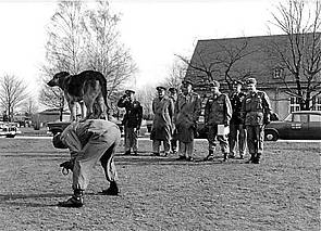 On a dog obstacle course the exclusively male dogs could train all required skills. At parades, dogs and handlers were a special asset to the otherwise typical traditional military inventory. Although it was here only for a short time, the Scout Dog Platoon is part of the diverse military history of “America in Augsburg”.