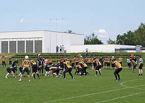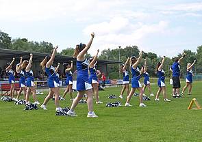Die American Football „Augsburg Raptors“ mit ihrer Cheerleader-Gruppe. Es gibt noch weitere Sportvereine dieser und anderer Art.