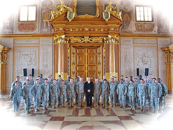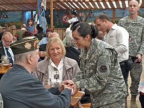 At the Augsburg veterans table. A warm greeting of the group by 1SG Barragan.