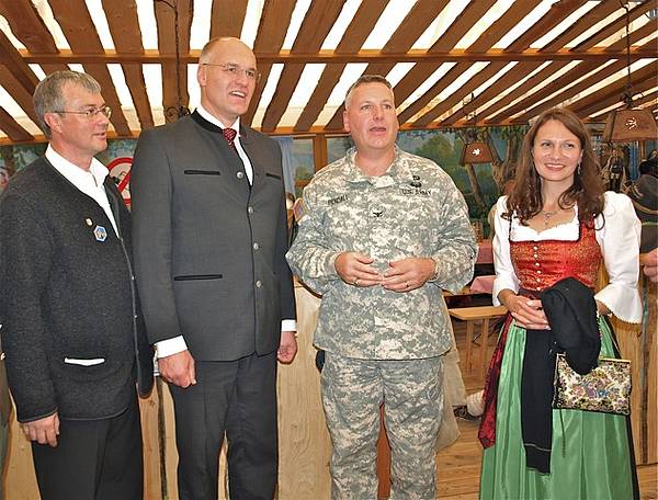 Lord Mayor Dr. Kurt Gribl (2nd from left) and his spouse Sigrid hop across to the American guests in the marquee.