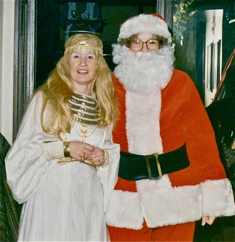 At the Christmas party of the Women's Club in 1986, the German President Marina Lindenberg present a Christian child, the American President Candy Edgerley as Santa Claus (Photo: German-American Women's Club).