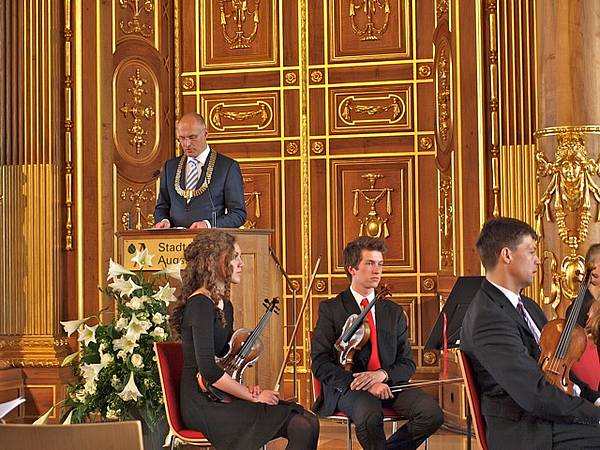 The string orchestra of the Gymnasium bei St. Stephan was provided as a background to the ceremony in the ‘Goldener Saal’.
