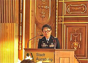 After the welcome and introduction by lord mayor Dr. Kurt Gribl, there were speeches by William E. Moeller, the American consul general, and CPT Monika Stoy, the chairwoman of the Outpost International 5845, Society of the 3rd Infantry Division.