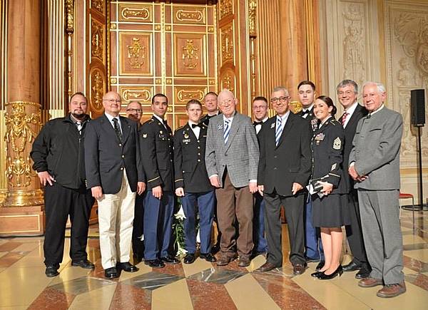 In commemoration of the 70th anniversary of the end of WW II, the City of Augsburg organized a public ceremony in he town hall´s Goldener Saal. Invited by lord mayor Dr. Kurt Gribl, numerous guests of public life, politics and economy, Bundeswehr, U.S. citizens and former U.S. employees from Augsburg, as well as societies. Besides, six soldiers of the 66th Military Intelligence Brigade from Wiesbaden, the last unit that had been stationed in Augsburg, followed the invitation.