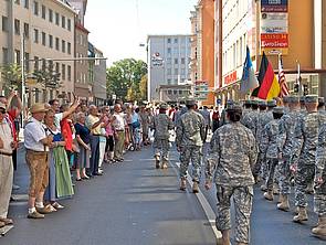 Die dicht gedrängten Zuschauer zollten den amerikanischen Soldaten wohlwollenden Beifall. Ein Zeichen, daß ihre jahrzehntelange Stadtpräsenz noch nicht vergessen ist.
