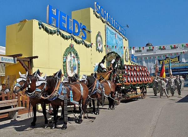 Ausdruck bayerischer Brauerei- und Festkultur: die historischen Pferdegespanne.