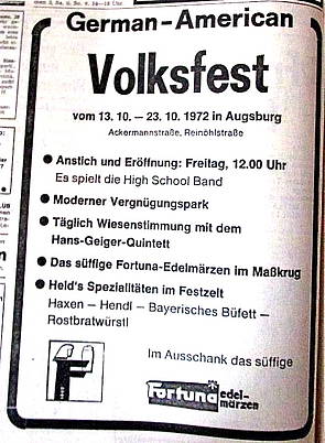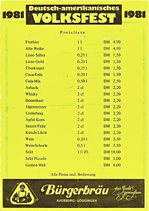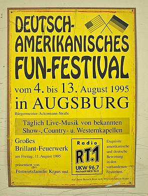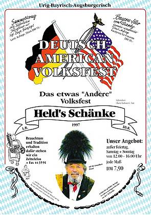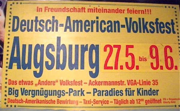 Mit ungewöhnlichen Wortschöpfungen machten die Plakate das Deutsch-Amerikanische Volksfest publik. Dies war wohl auf die Initiatoren der Veranstaltung zurückzuführen.