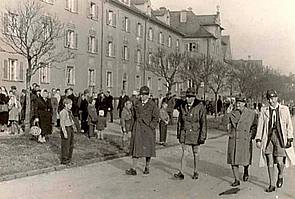 Only in December of 1951, the Americans released the Hochfeld. The DUs were redeveloped at an expense of 1 Million DM and returned to the former tenants. As in Haunstetten, no more U.S. soldiers moved in. Photos of that time proof the expressive home country culture of the DPs that lived there. Conflicts with the local nationals, however, were inevitable. Contemporary witnesses report active trade with the belongings of the owners and steep misbehaving.