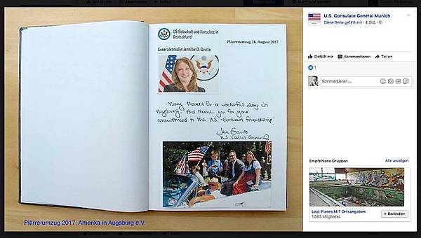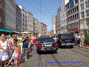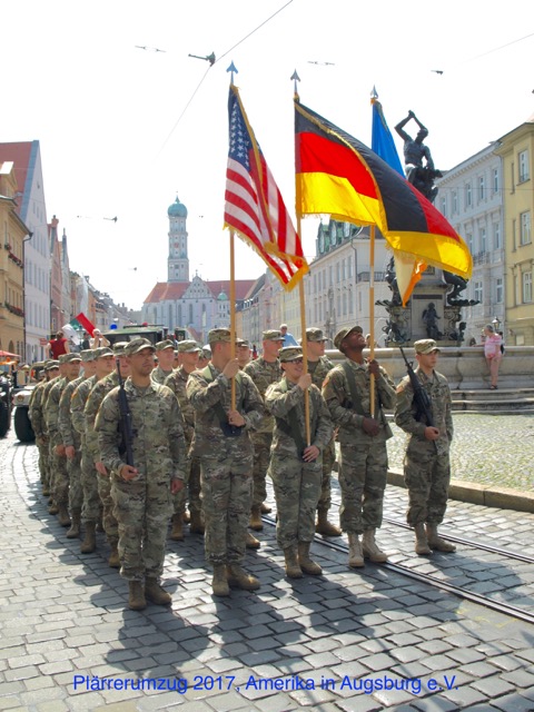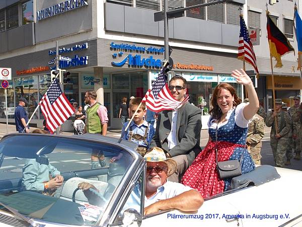 This year’s highlight was US consul general Jennifer D. Gavito from Munich, enriching together with her husband and her children the American delegation in a Cadillac convertible. Charming and cordial, Ms. Gavito showed the American closeness with the longtime garrison Augsburg, enthusiastically welcomed by the watching population. In many Augsburgers, this unexpected contact with the American way of life brought back memories of earlier years.
