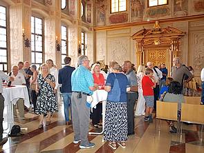 Ein anschließender Umtrunk ergab zahlreiche Möglichkeiten für sich kennenlernende Gespräche und die fotografische Erinnerung. Etliche Amerikaner und Amerikanerinnen erschienen in bayerischer Trachtenkleidung und drückten damit ihre unauslöschliche Identität zu Bayern aus. Augsburg und Amerika verschweißten sich auf diese Weise erneut zu einer transatlantischen Zusammengehörigkeit. Leider wurde von der lokalen Zeitung mit keinem Wort darüber berichtet.