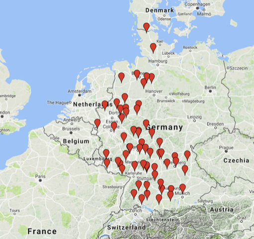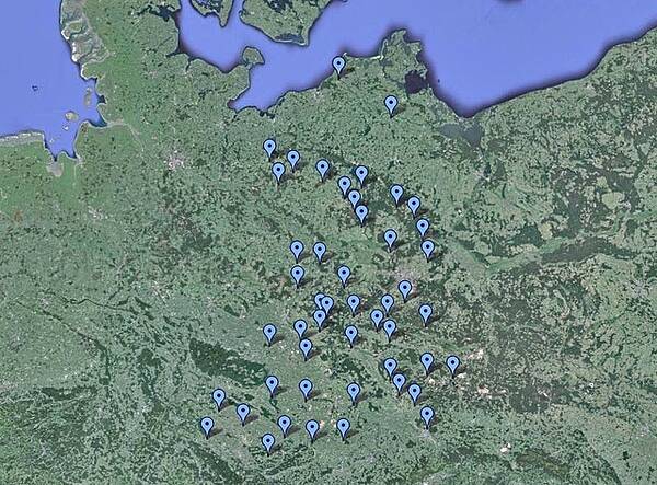 Die Standorte der amerikanischen Atomwaffenlager in Westdeutschland (Google Earth).