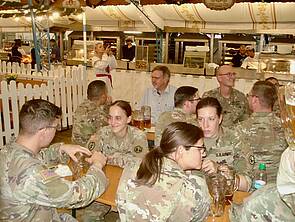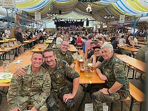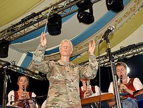 Höhepunkt des doch kurzen Bierzeltbesuches war der Bayerische Defiliermarsch, den COL Christina Bembenek mit viel Gefühl dirigieren durfte.