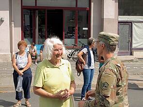 Hautnah am Volk: eine ältere Dame sprach COL Bembenek wohl zu Erlebnissen an, die sie mit amerikanischen Soldaten in Erinnerung hatte. Es waren offensichtlich nicht die schlechtesten. Ihre Freude über das Wiedersehen konnte man deutlich erkennen.