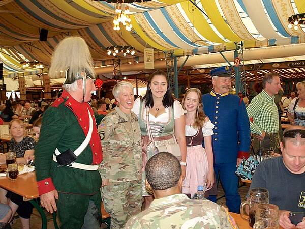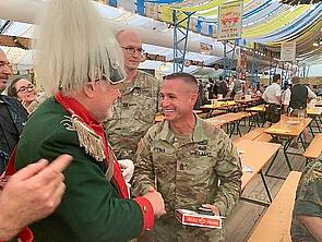 Verabschiedung von COL Bembenek mit bayerischen Komparsen und hübschen jungen Augsburgerinnen. Wir danken den Gästen der 66th Military Intelligence für die strapaziöse Reise für wenige Stunden Augsburger Lebensgefühl.