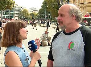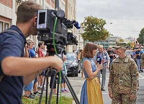 Eine Reporterin von a.tv führte mit COL Bembenek und Vic McFadden ein Kurzinterview am Straßenrand durch (Fotos: Screenshot aus a.tv).