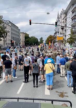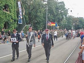Die ehemaligen Angehörigen der Field Station fanden sich in Augsburg willkommen und liefen trotz fortgeschrittenen Alters den gesamten Umzugsweg mit.