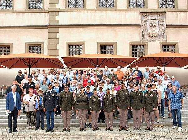 Links: OBin Weber und Veteran McFadden in Harmonie zwischen USA und Augsburg. Rechts: COL Bembenek (vorne Mitte) mit ihrer Vorhut der 66th MI-Brigade.