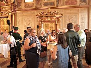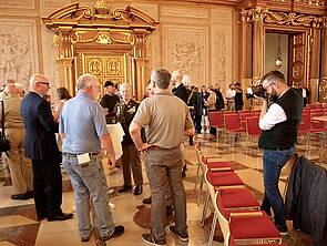 Greetings consisted of thoughtful words by Lord Mayor Eva Weber, Consul General Tim Liston, reunion organizer and MI-veteran Mike Leary as well as Amerika in Augsburg e.V. society’s Georg Feuerer. Leary thanked the City for her impressive invitation in the Golden Hall and emphasized how much the ex-servicemen like to return to Augsburg time and time again. They derive pleasure from the city as their second home town, because the heart of the city has remained the same, even without the kasernes.