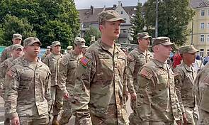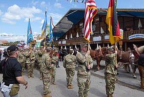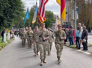 R: Mit Kadence-Gesang begleiteten die US-Soldaten den Marsch bis zum Plärrergelände.