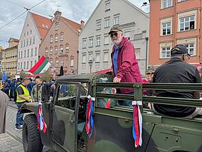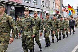L: Auch Reservisten der Bundeswehr nahmen am militärischen Teil des Plärrerumzugs teil.