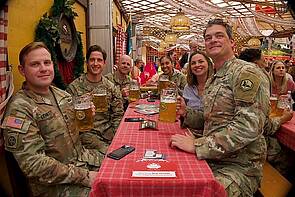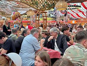 Mit über 30 Soldaten nebst Familienangehörige reisten am 23. September zwei Omnibusse an, die mit einem Besuch des Neuen Amerika Hauses im Sheridan Park den Plärrerbesuch einleiteten. Bei schönstem „Plärrerwetter“ fand die Teilnahme zum 19. Mal statt, die Aufmerksamkeit der Straßenzuschauer war auch nach all den Jahren ungebrochen. Im Bierzelt wurden die Gäste traditionsgemäß mit einer Maß Bier und einem Brathendl versorgt, wobei es den überwiegend jungen Amerikanern auch auf das bayerische „way of life“ ankam.