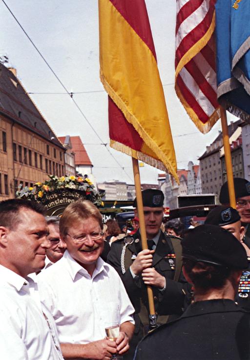 Beim traditionellen Plärrerumzug durch die Augsburger Innenstadt präsentierte sich "Amerika in Augsburg e.V." in einem Konvoi mit seinen Mitgliedern, Vereinsfreunden und einer Abordnung der US-Army aus Darmstadt. Diese bis 1998 zuletzt auch in Augsburg stationierte Einheit (66th Military Intelligence Group) vermittelte den Augsburger Bürgern einen erinnerungsvollen Gruß, welcher im Blick auf den kürzlichen 60. Jahrestag des Kriegsendes besonders Bedeutung erlangte. Als Vermittler betätigte sich der letzte in Augsburg lebende aktive US-Soldat, Roy Bowen.